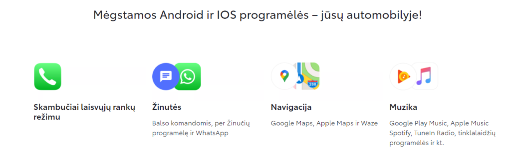 Paties prijungto telefono naudoti nederėtų. Google ir Apple nustatė, kurias programėles ir funkcijas galima naudoti vairuojant.