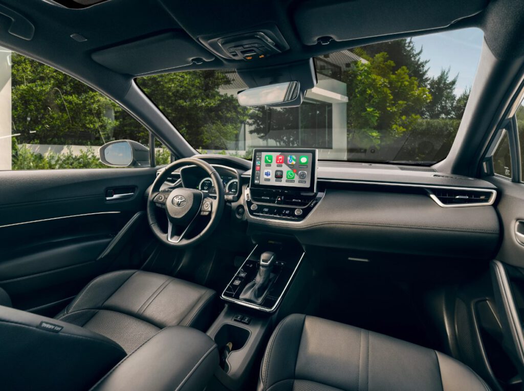 Pasiekiamoje vietoje įrengtas, aiškus, greitai reaguojantis Corolla Cross 10,5 colio multimedijos jutiklinis ekranas suteikia prieigą prie navigacijos, medijos, automobilio funkcijų.